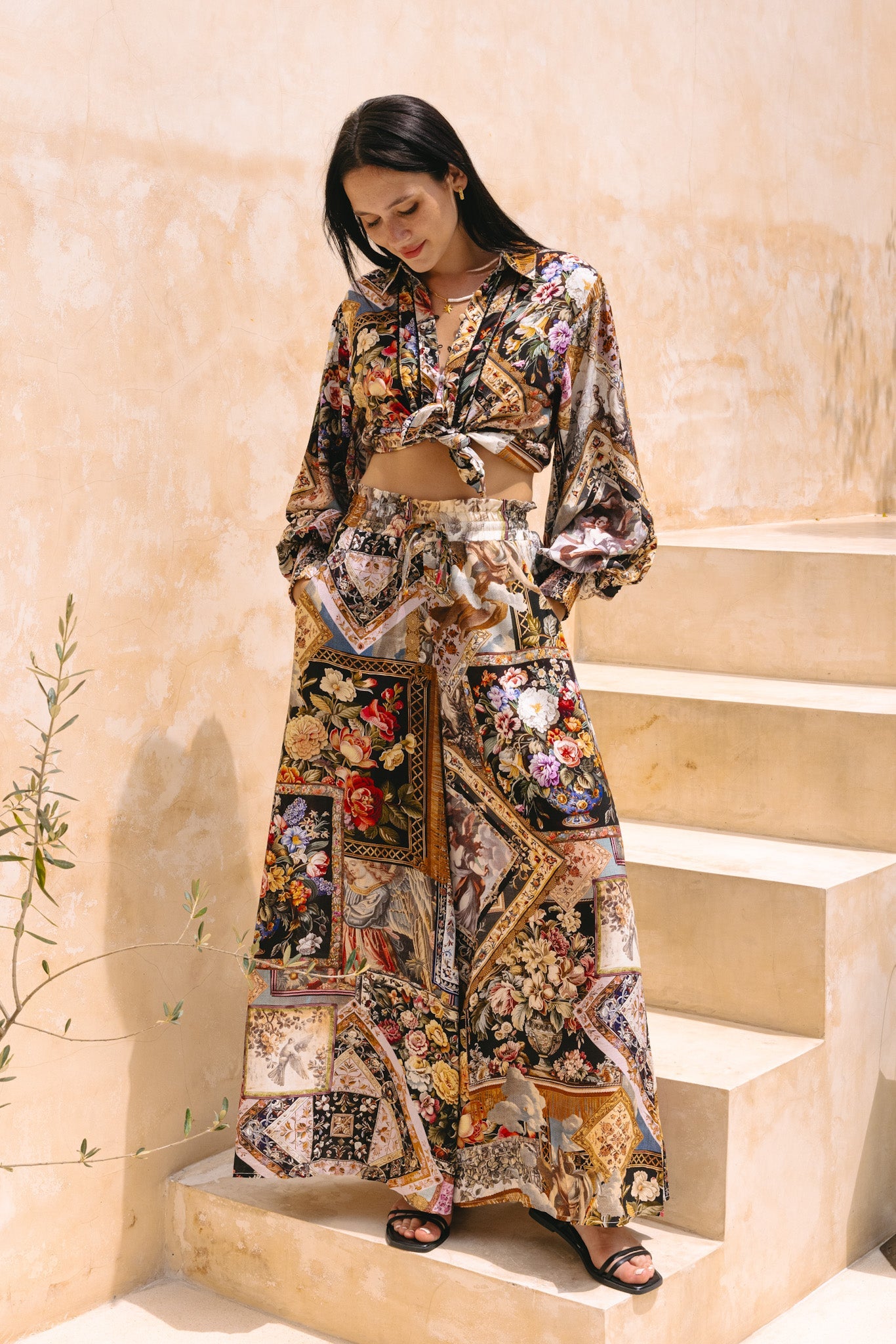 When looking at artwork no longer impresses you, how about wearing them? The Alessia Wide Leg Pants features an European-inspired abstract patchwork print so you can carry the art with you.
