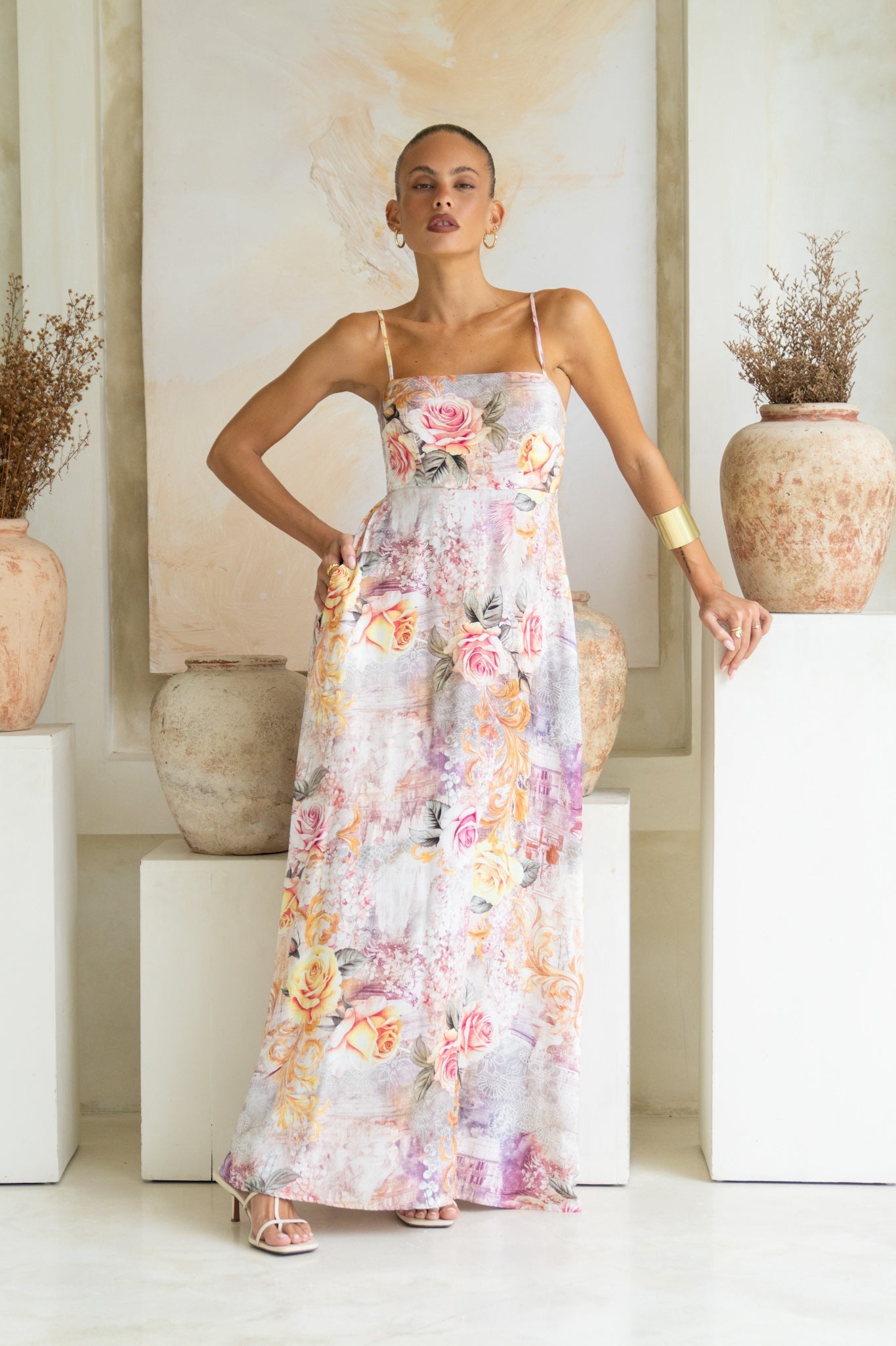 Carmella Pink Floral Flared Maxi Dress