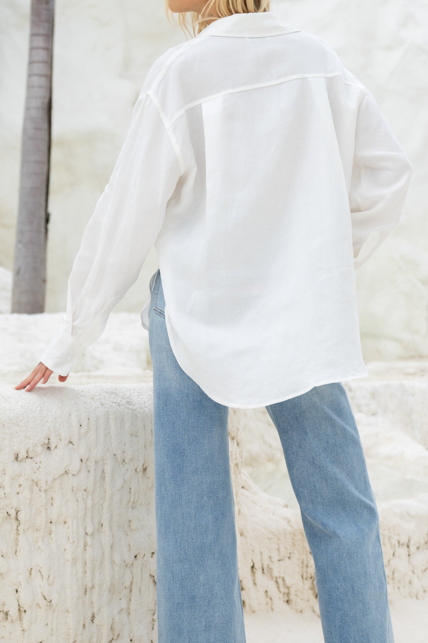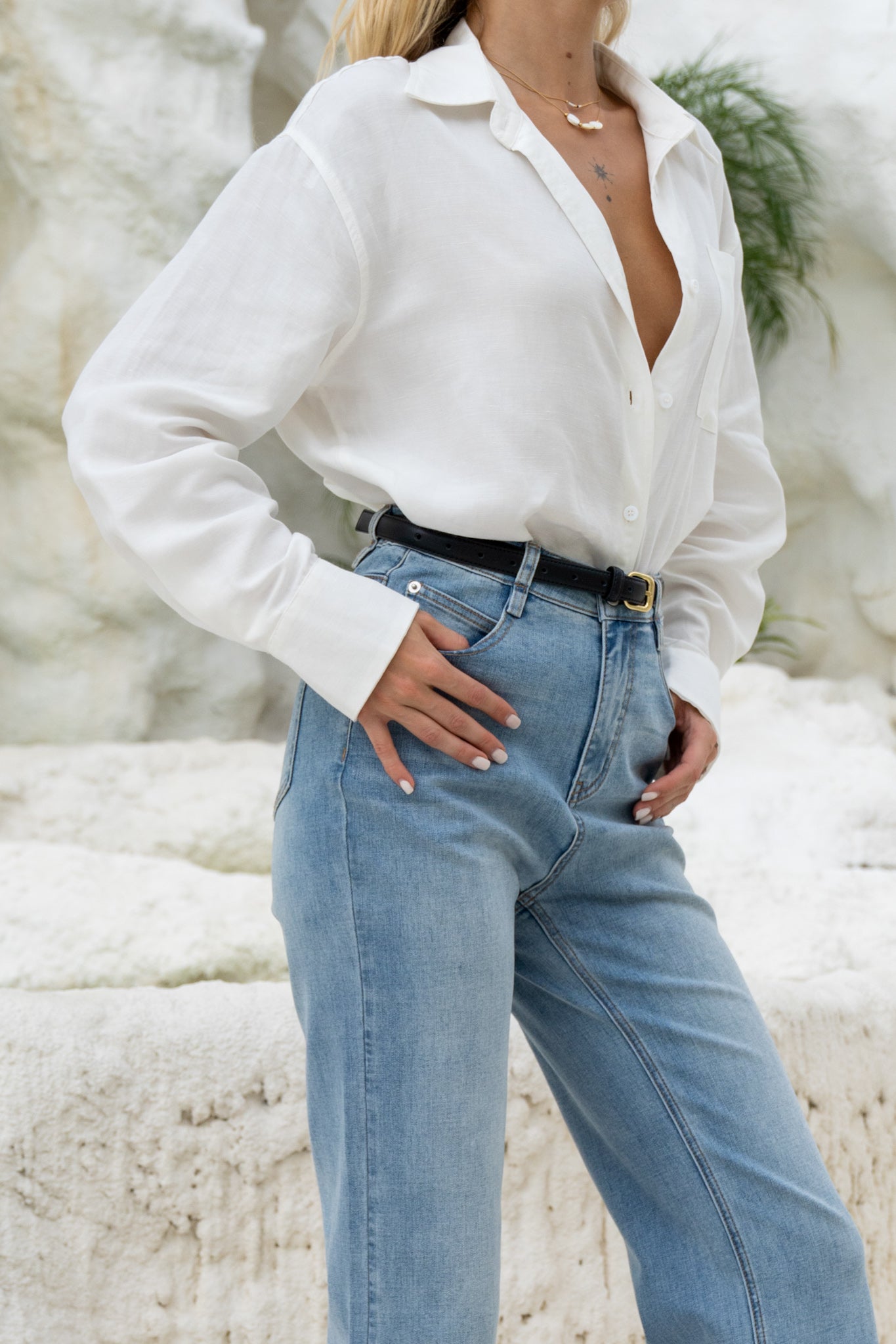 Eleina is your crisp white shirt but made better. Designed in a beautifully breathable blend of tencel and linen, it’s the kind of piece that manages to look polished while still feeling totally relaxed.