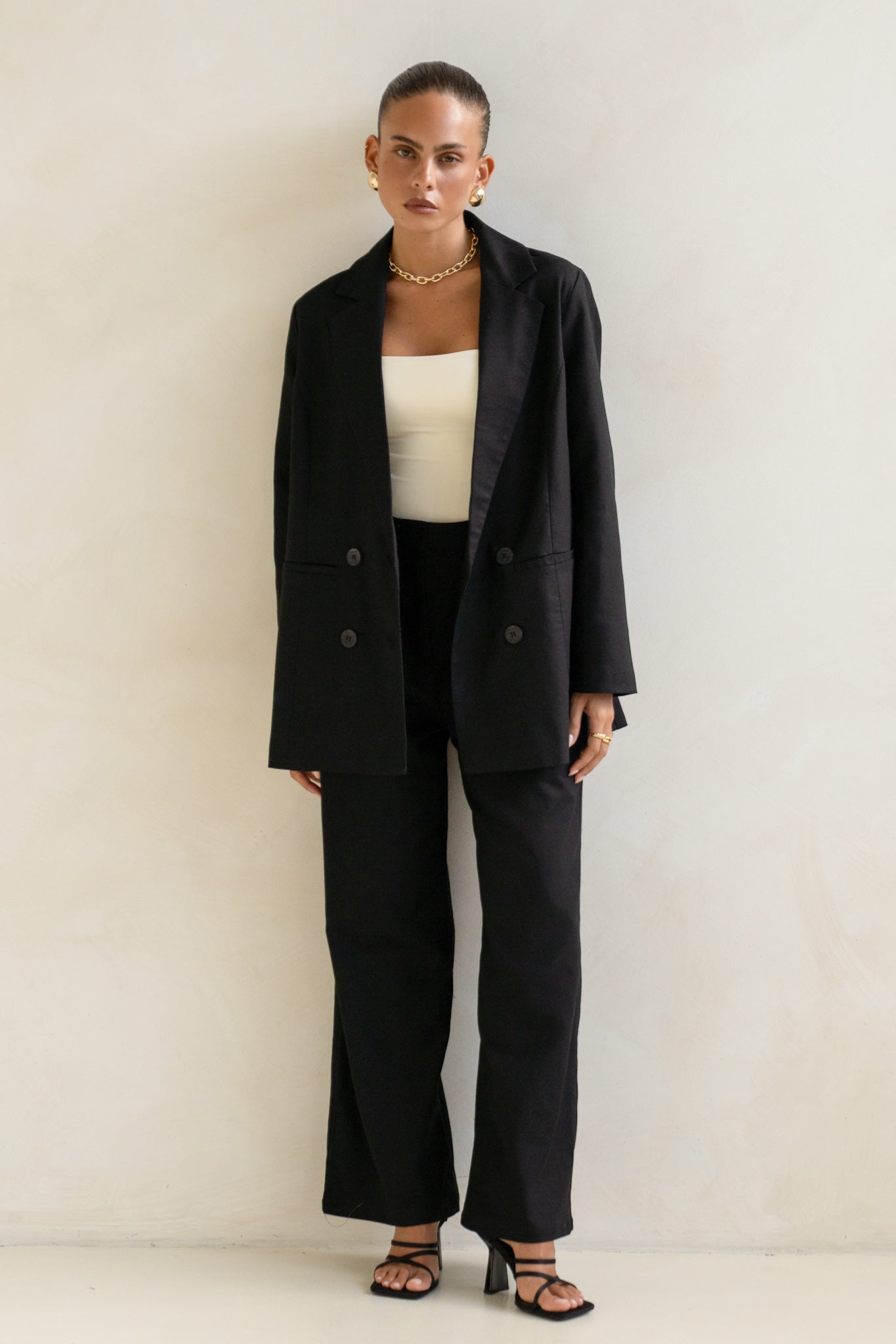 The Keke pants is made with 30% Linen, 30% Cotton, 40% Viscose.