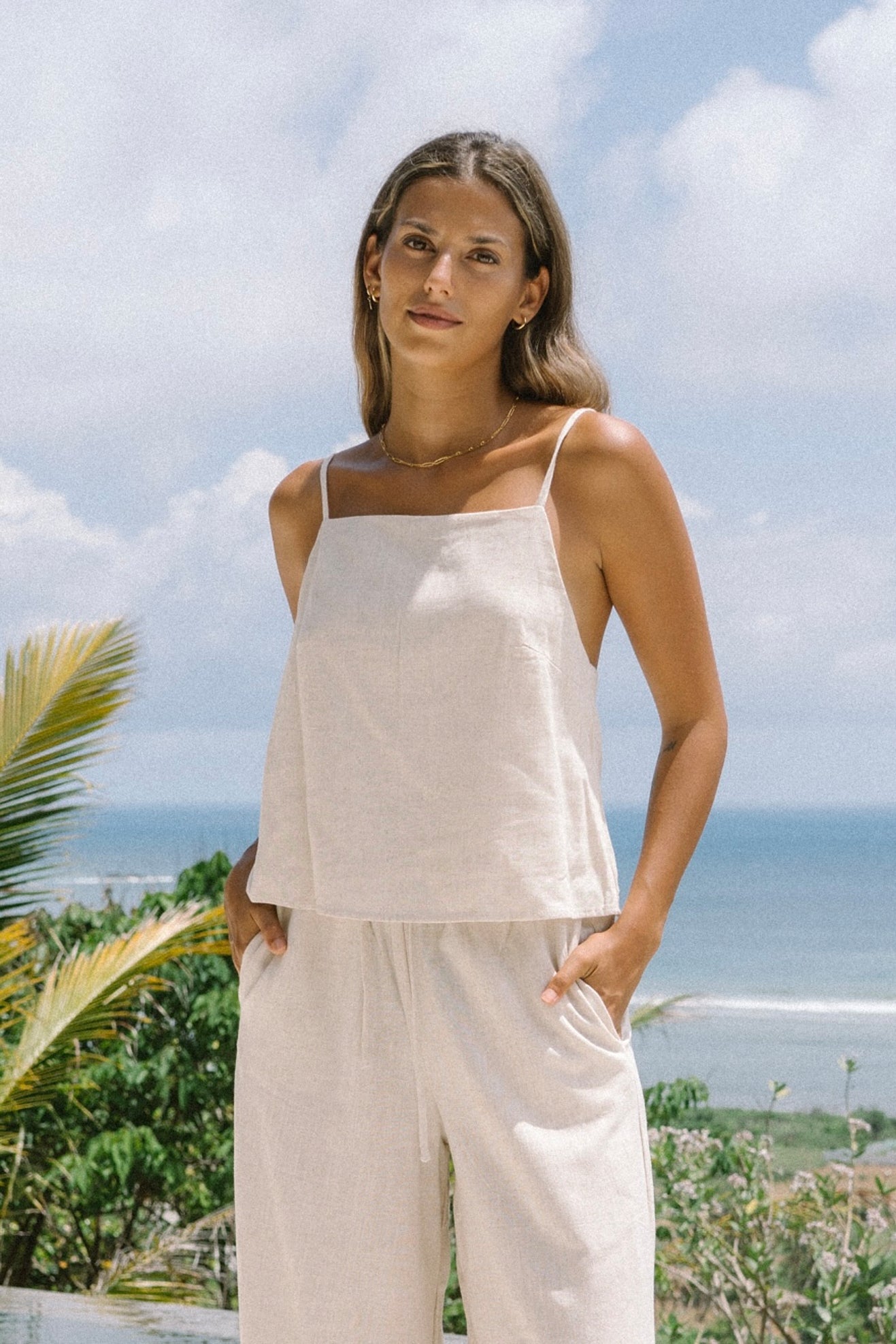 Levie Beige Linen Cami Top