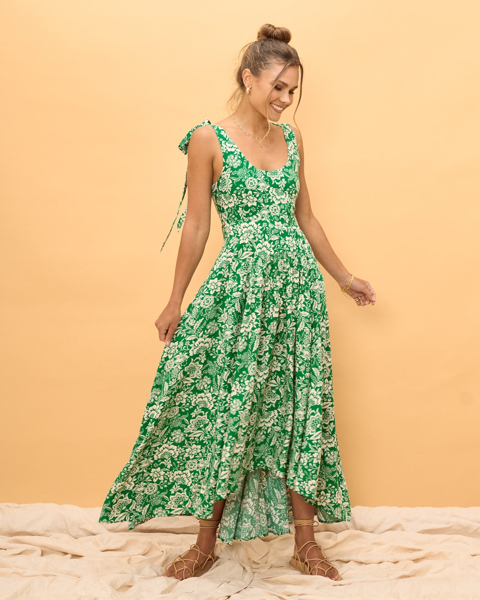 Dive into summer elegance with the Miah Green Floral High Low Midi Dress! This midi dress is perfect for all of your summer occasions and will leave you feeling both confident and comfortable no matter where you go. Imagine taking a stroll down by the beach in this beautiful dress. The vibrant green colour will turn heads, while its tapered waist, scoop neckline, and shoulder ties make sure that you stay locked in on-trend style. With its high-low hem and floral print, your look transcends from casual to chic seamlessly. Plus, it’s designed to fit your body curves perfectly and keep you looking good no matter what the occasion! Step out in confidence; get your hands on the Miah Green Floral High Low Midi Dress today!