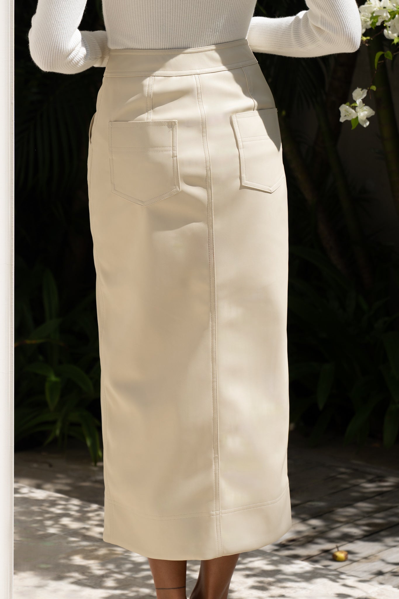 The stitching? Clean but not clinical. The fabric? Supple, sculptural, and surprisingly soft, like your favourite biker jacket decided to become a skirt. It's got pockets (praise be), a hem that hits that just-below-the-calf sweet spot, and enough polish to elevate a basic tee or take on that blazer you've been meaning to style outside the office.