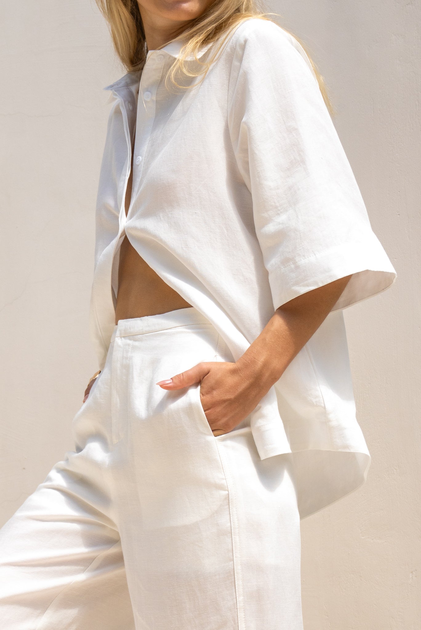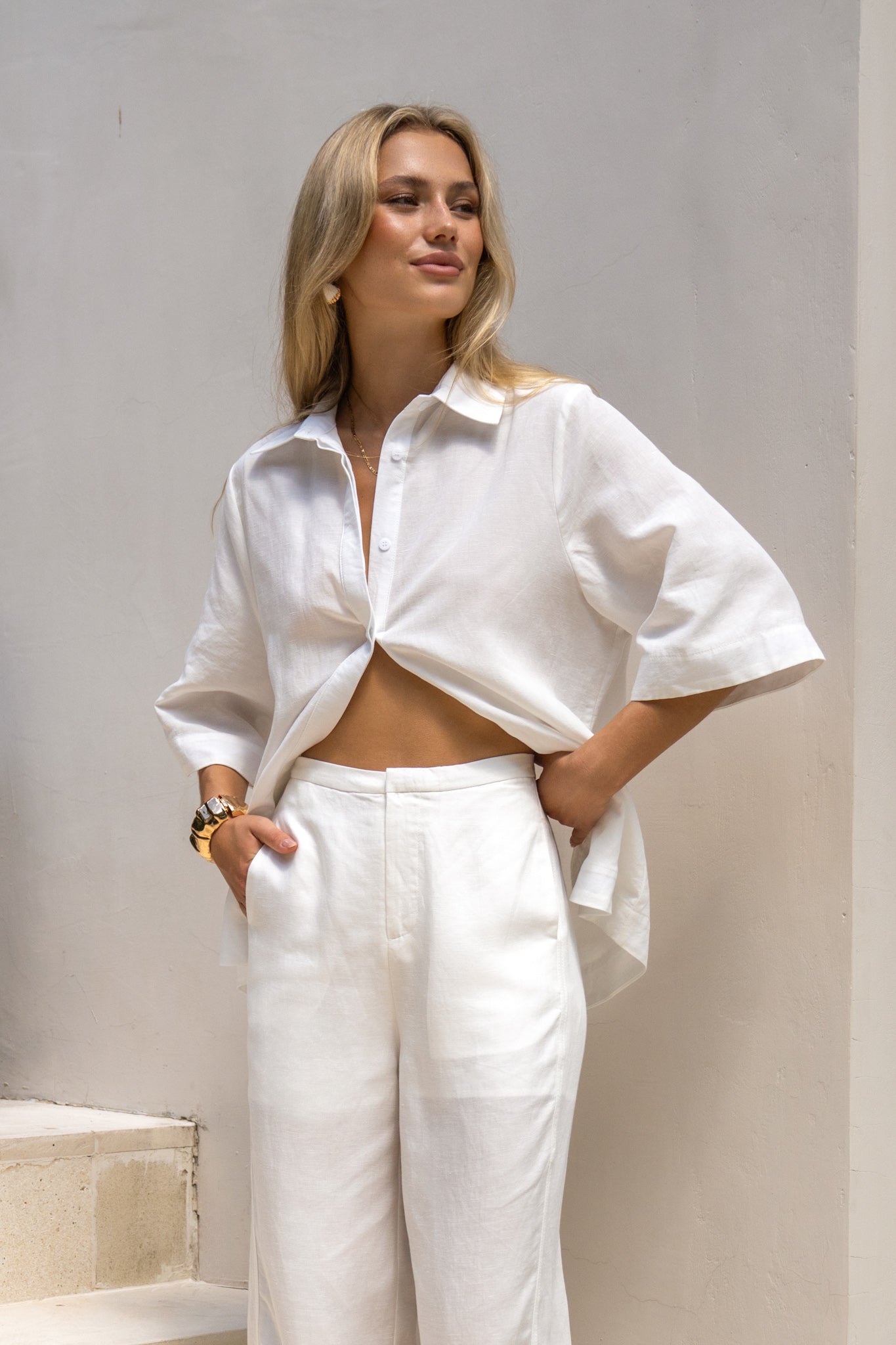 Crisp. Quietly confident. And just the right amount of undone. The Rize White Shirt walks that beautiful tightrope between structure and softness. Think modern architecture meets Sunday linen sheets.