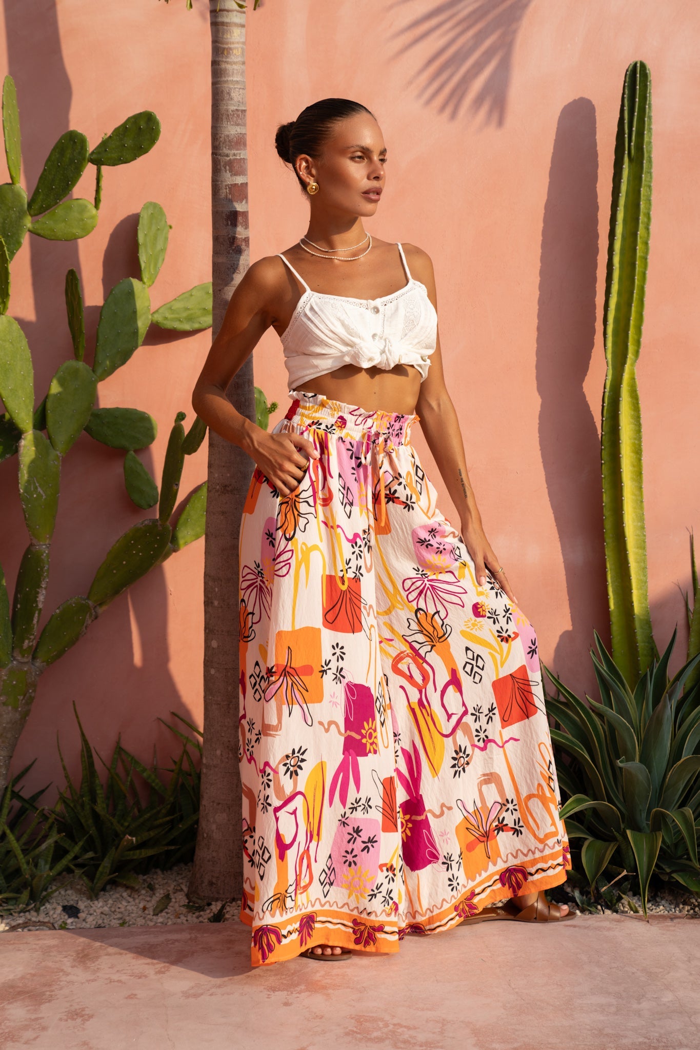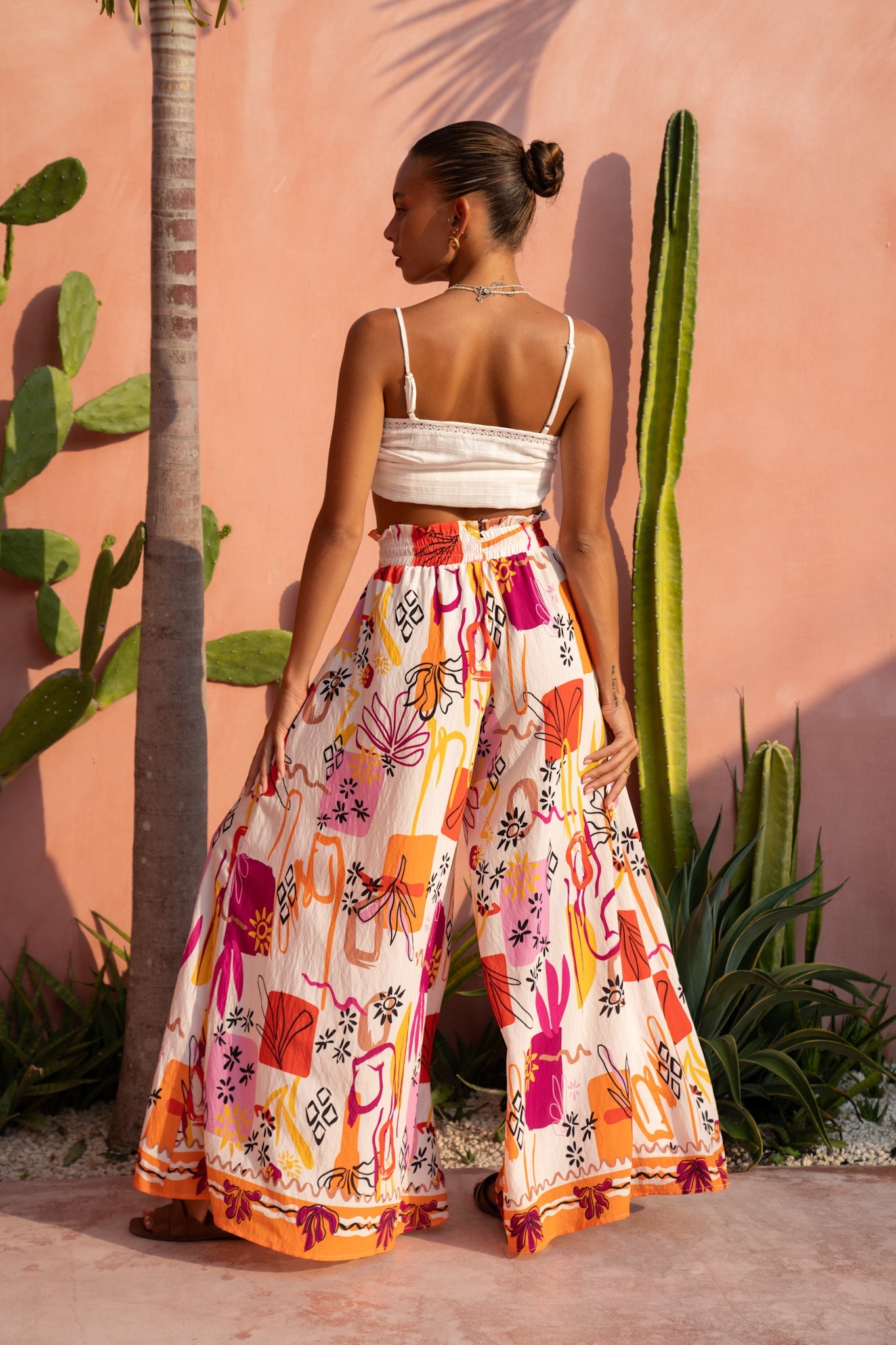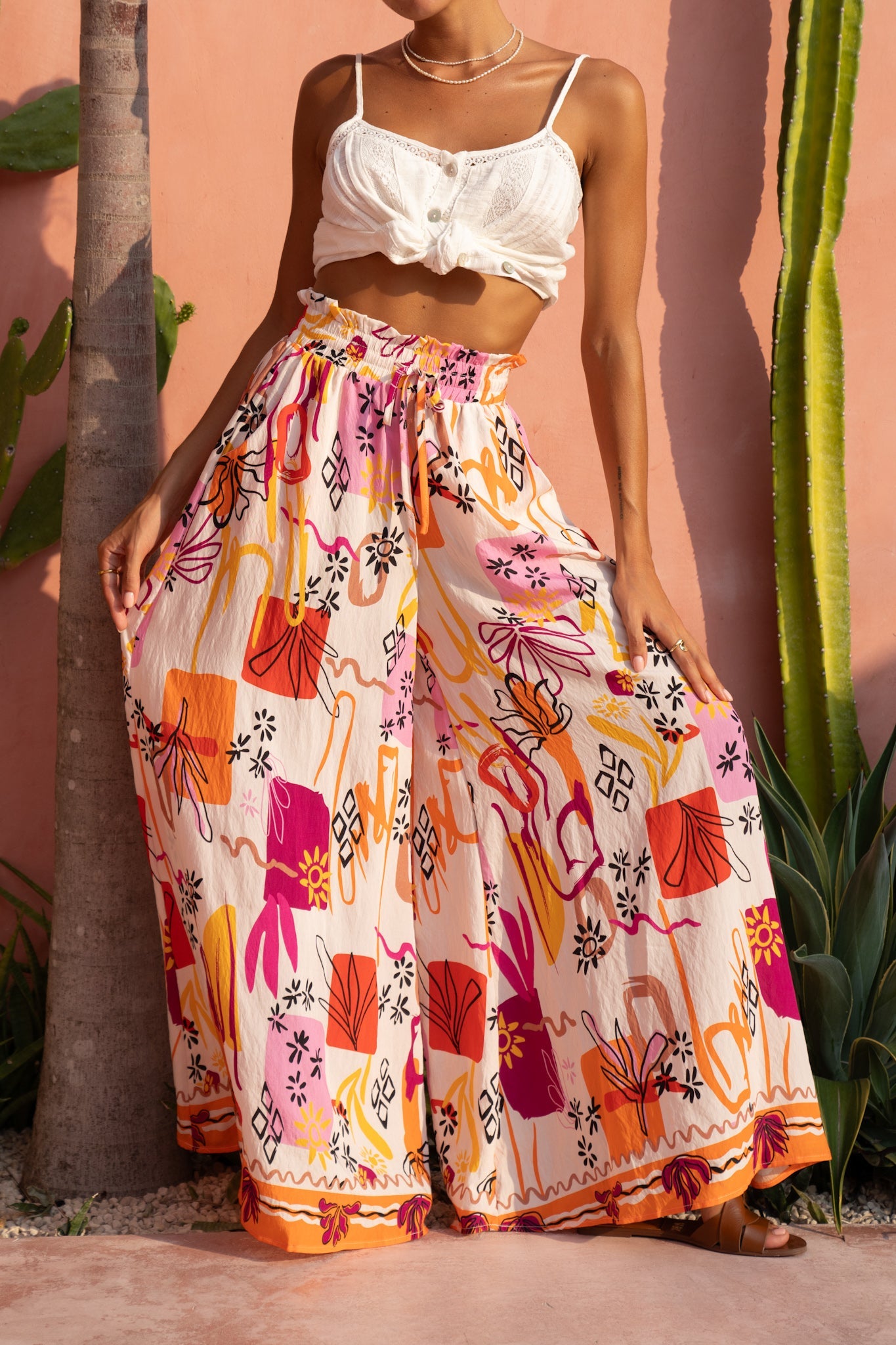 Elevate your wardrobe with the Saffron Orange Abstract Wide Leg Pants. These gorgeous pants feature a bold and beautiful print in an elegant wide-leg fit. With the elastic self-tie waist, you can customise the fit to your body shape for the ultimate comfort and confidence. These beautiful pants also have side pockets, so you can keep your essentials close without compromising style. Constructed in breathable fabric, these pants ensure you stay cool throughout summer days or nights. Whether you're going for a relaxed weekend look or something more casual-chic, these nature-inspired pants are perfect for any occasion!