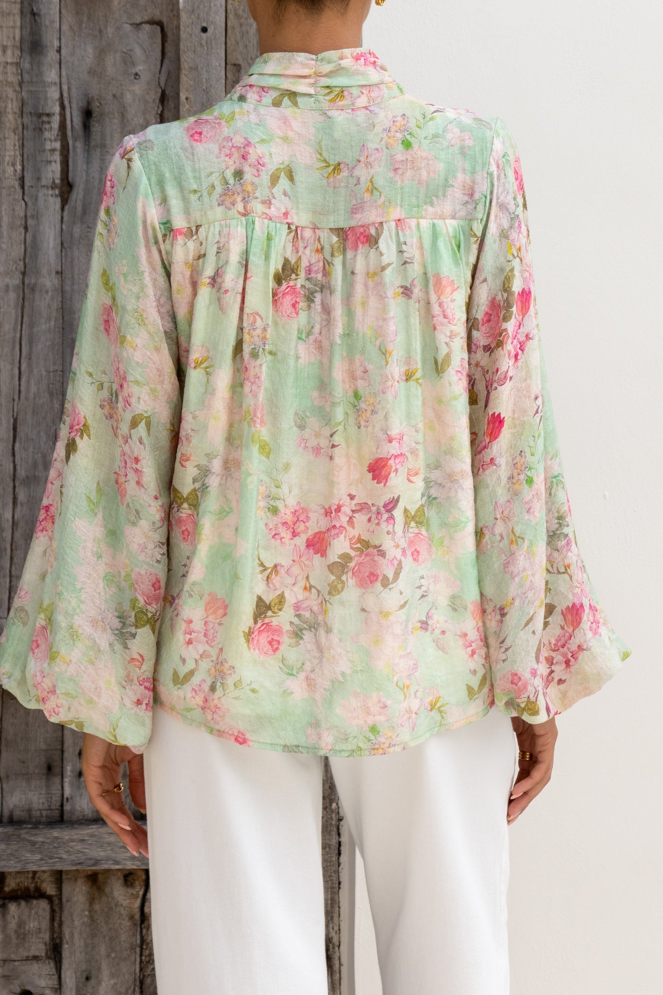 Sheila Green Pink Floral Balloon Sleeve Blouse
