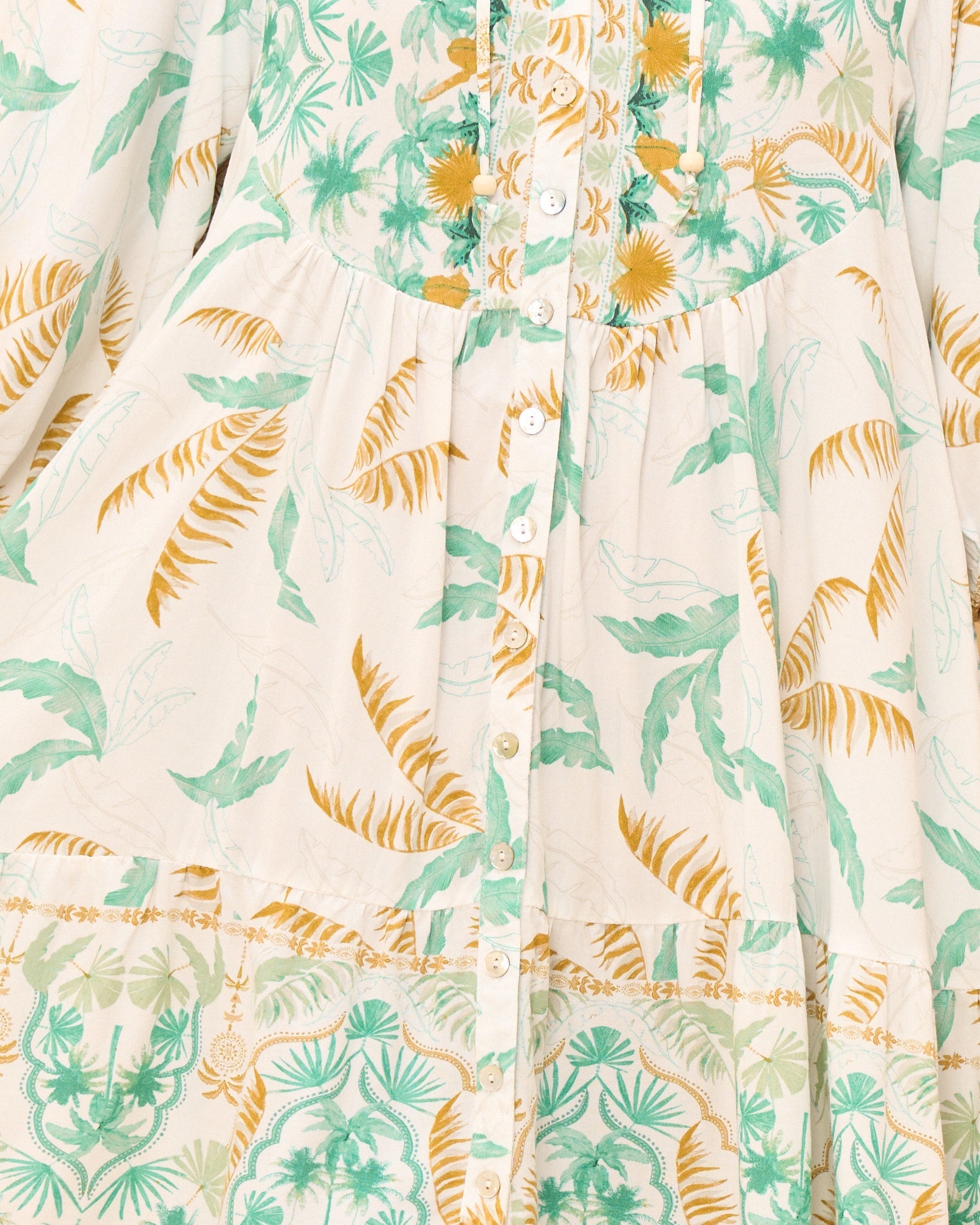 Wisteria Blue Floral Boho Button Down Mini Dress