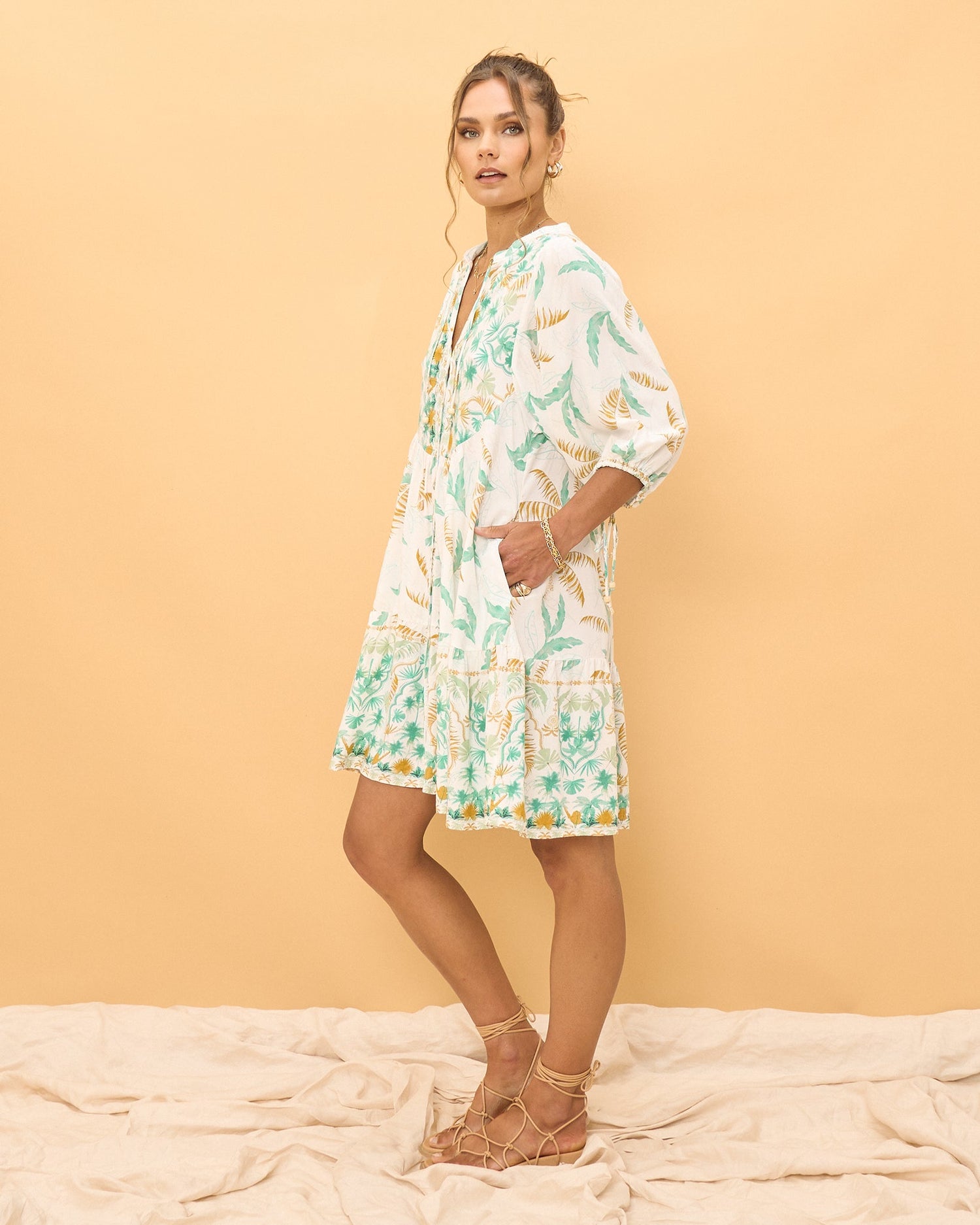Our Wisteria dress is super breezy and comfortable, definitely the perfect dress for you! The lightweight fabric is perfect for hot summer days, and the trendy blue floral print will have you looking stylish for any event. The V-neckline with self-tie and button-down front add a touch of elegance, while the balloon sleeves and mini length keep it casual and fun. There are 2 hidden side pockets so you can keep your items close without compromising style. Don't miss out on this must-have summer dress!